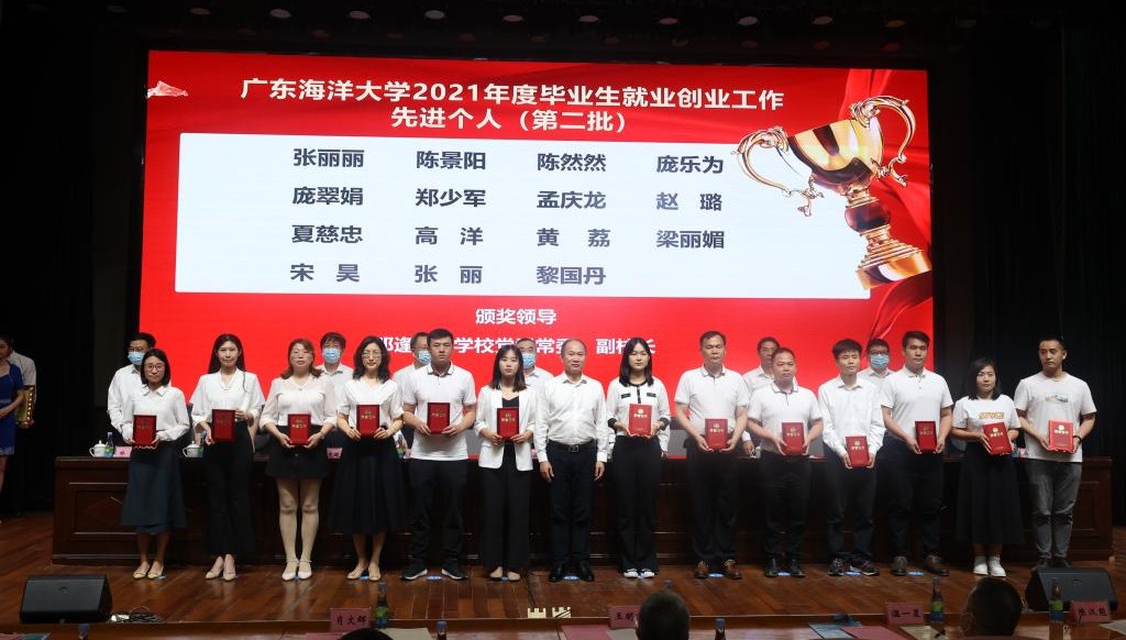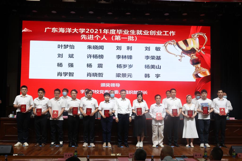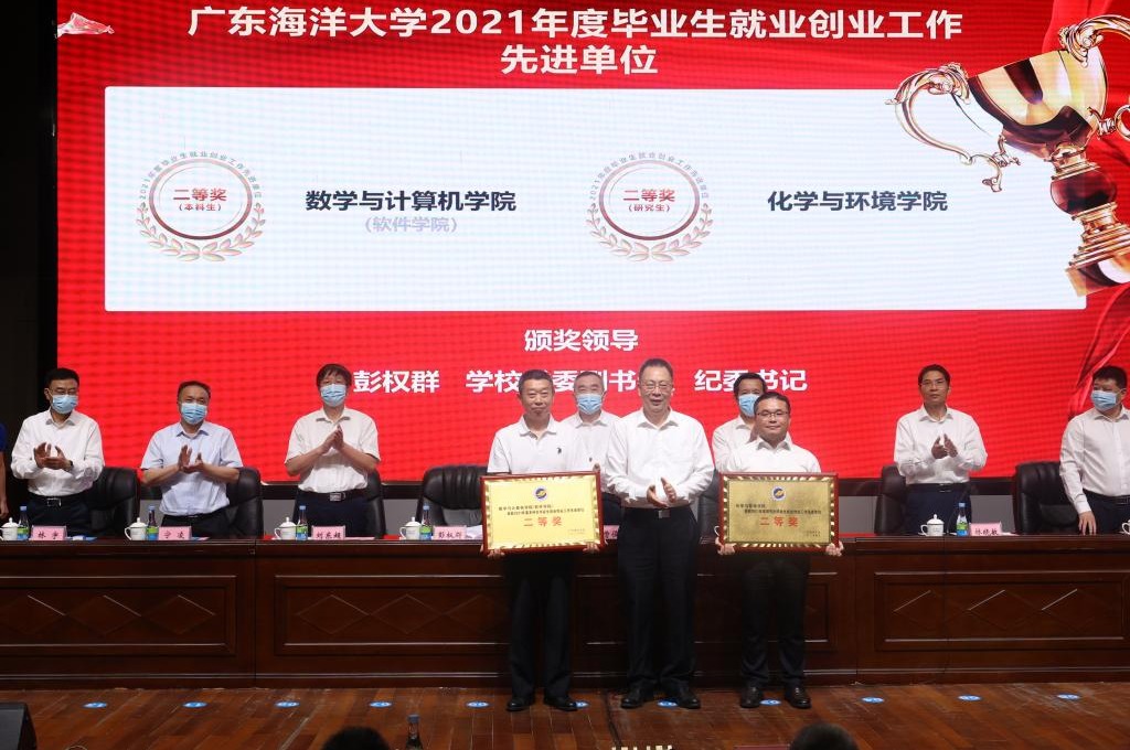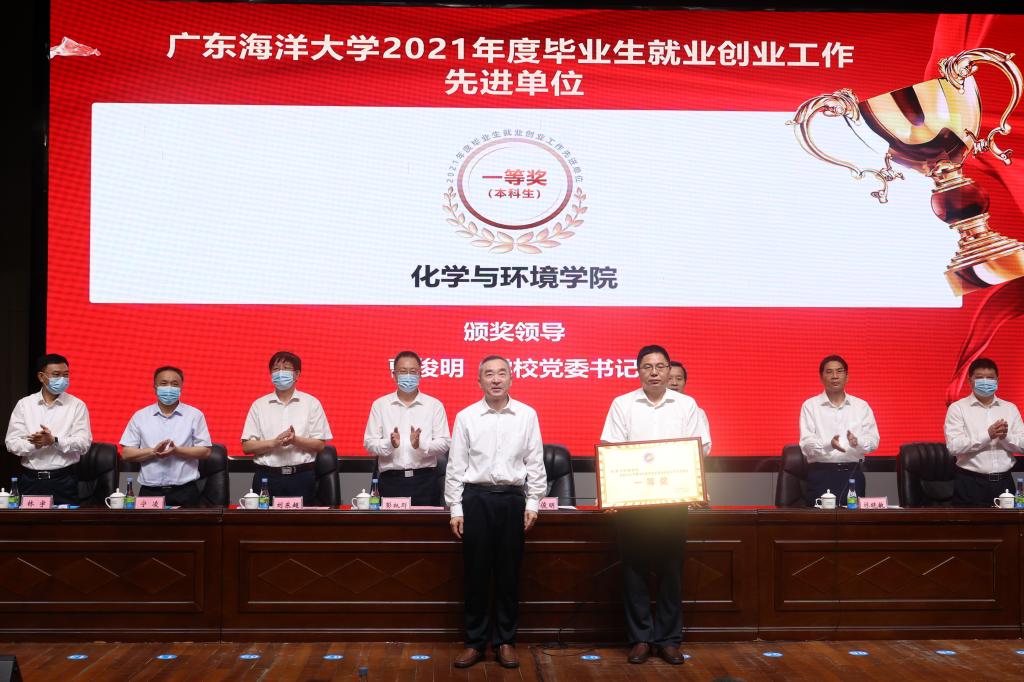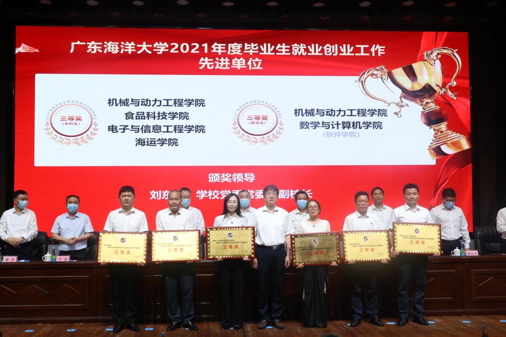 会上,林晓敏宣读了《关于表彰2021年毕业生就业创业工作先进单位和先进个人的决定》,出席会议的校领导分批为先进单位和先进个人颁奖。化学与环境学院党委书记蔡鹰代表本科生就业创业工作先进单位、水产学院院长李广丽代表研究生就业创业工作先进单位、文学与新闻传播学院院长孙长军代表就业创业指导服务工作先进单位依次作了工作经验分享。