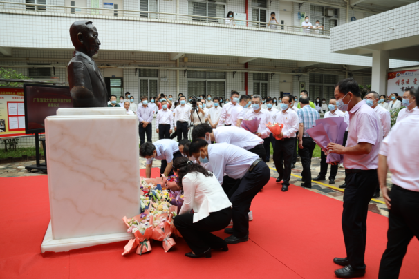学校在兴农楼举行了隆重的铜像揭幕仪式。学校党委书记曹俊明出席仪式并讲话,学校相关领导主持仪式,校领导彭权群、林晓敏、刘东超、宁凌、林宇出席仪式,相关职能部门负责人、滨海农业学院全体班子成员、袁隆平院士海水稻创新团队成员和部分师生代表参加仪式。师生们观看了袁隆平院士第三子,湖南杂交水稻研究中心副主任,杂交水稻国家重点实验室副主任,国家耐盐水稻技术创新中心常务副主任袁定阳的讲话视频,并怀着崇敬与缅怀的心情依次向袁隆平院士铜像鞠躬献花。