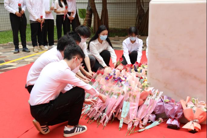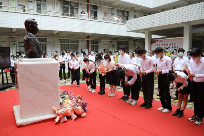仪式结束后,同学们自发向袁隆平院士铜像献花