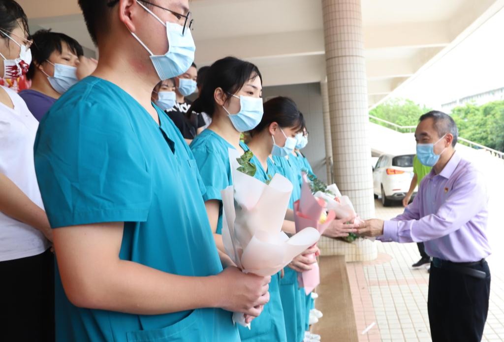 5月12日是第111个国际护士节,今年护士节主题是“关爱护士队伍,护佑人民健康”。当天,学校领导曹俊明、彭权群、林晓敏、邓逢光、林宇等分别前往湖光校区、海滨校区、霞山校区看望慰问了为欧冠师生开展全员核酸检测的医护人员以及学校门诊部、医务室的医务人员,向奋战在抗击疫情一线的医务人员表示诚挚慰问和节日祝福。