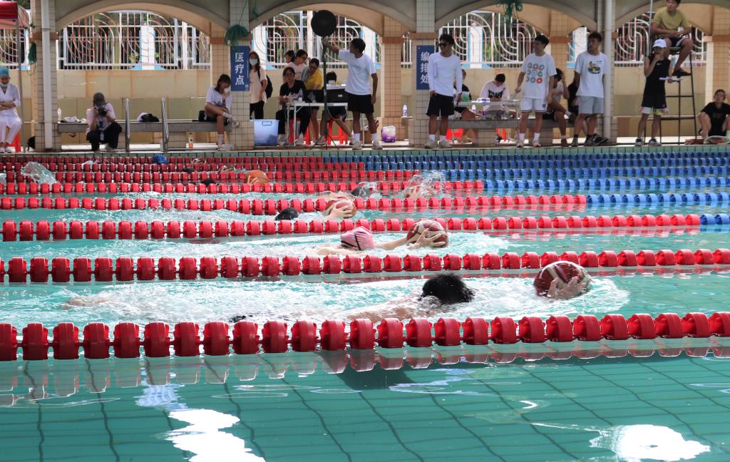 为增强师生身体素质,激发师生团结共进的精神,营造良好积极的体育氛围,5月28日,以“畅‘游’展英姿、奋‘泳’正芳华”为主题的学校第十五届游泳运动会在湖光校区游泳场举行。本届运动会设有学生组16个、教师组14个比赛项目,共有18支学生代表队、16支教职工代表队近300名师生运动员参加了比赛。学校党委副书记、纪委书记彭权群致开幕词,学校党委常委、副校长邓逢光致闭幕词。邓逢光主持开幕式,校长办公室主任尹喜主持闭幕式。党委办、校长办、宣传部、学生处、校团委、校教育工会、体育与休闲学院等单位部门负责人出席仪式。