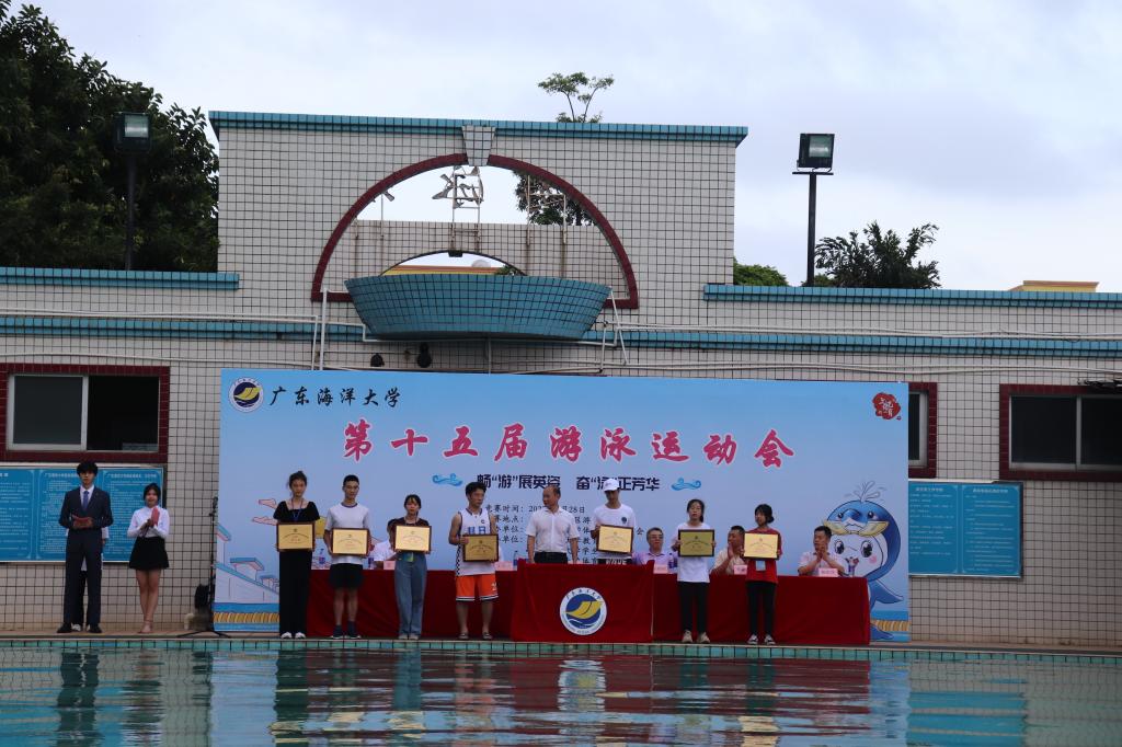 经过激烈角逐,体育与休闲学院、电子与信息工程学院、滨海农业学院、机械与动力工程学院、研究生院、经济学院、食品科技学院分别获得学生团体前六名;体育与休闲学院工会、机关工会、后勤工会、水产学院工会、机械与动力工程学院工会、数学与计算机学院工会、管理学院工会、马克思主义学院工会分别获得教工团体前八名;滨海农业学院获得体育道德风尚奖;经济学院、管理学院获得优秀组织奖。共有3项学校游泳运动会纪录被刷新。出席领导分别为获奖团体颁奖。