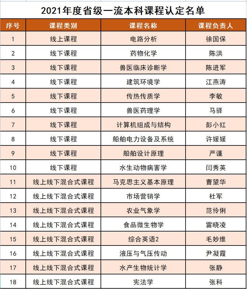 课程是人才培养的核心要素,课程质量直接决定人才培养质量。近年来,学校积极落实教育部、省教育厅关于一流本科课程建设的实施意见,贯彻学生中心的教育理念,坚持推进信息技术与教学深度融合,以项目培育及申报为驱动,以本科教学质量与教学改革工程项目为抓手,全面推进欧冠一流课程及课程思政建设工作,调动学校教师参与课程建设的积极性,构建校、省、国家三级一流课程体系。学校将进一步加大课程建设力度,充分发挥一流专业及一流课程的引领示范作用,持续推进课程改革创新,推动课程建设水平和人才培养质量再上新台阶。