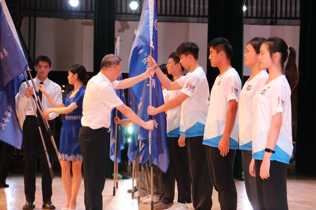 会议最后进行了授旗仪式,彭权群为欧冠2022年暑期社会实践活动团队授予旗帜,各实践团队挥舞旗帜,信心满满,整装待发。