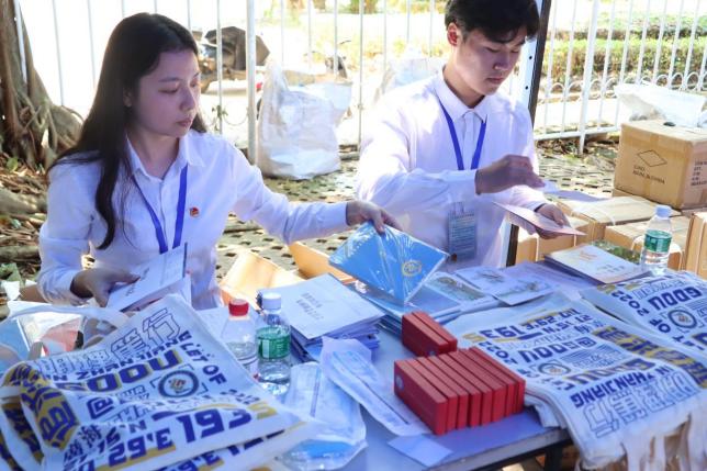 为彰显迎新工作的人文关怀,各学院精心准备了别具一格的迎新活动。水产学院专家教授坐镇专业咨询点,帮助新生加强对专业的了解、树立明确的学习目标。经济学院班主任助理在报到点轮值迎新,充分发挥朋辈榜样引领作用,帮助新生尽快适应大学生活。不少学院为新生送上别出心裁的“见面礼”:管理学院为新生们定制了包含精美钥匙扣、团学宣传册、新生纪念册等礼品的文创大礼包,让同学们刚踏入大学校园就收获归属感和认同感。数学与计算机学院定制了手绘地图,暖心做好生活攻略和服务指南,并为每一位新生配发了本专业的人才培养方案和致新生一封信等,鼓励同学们求学上进,开启四年追梦之路。滨海农业学院为新生定制“预见未来,圆梦海大”主题帆布袋、书签以及口罩,祝福新生奋发有为、逐梦青春。外国语学院为新生定制文化伞,寓意为学子“遮风挡雨”。