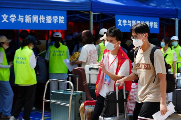 “同学您好,请问需要帮忙吗?”“我来拿行李吧!”校园里,学生志愿者和服务队为新生搬运行李、协助办理宿舍入住手续、答疑解惑,忙碌不停。据校团委负责人介绍,今年校院两级共有超过1万人次志愿者参与迎新服务工作,每天分为不同时间段轮流值守、无缝对接,一对一或多对一地协助新生完成报到手续。“希望通过我们这些师兄师姐的努力,可以让新生们有一个更好的入学体验。”迎新志愿者常馨予说。阳江校区首届学子廖文俊表示:“去年我们是新生迎接新生,今年不一样了,务必要让他们感受到师兄师姐们的热情!”