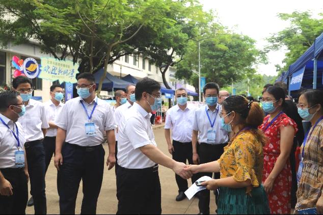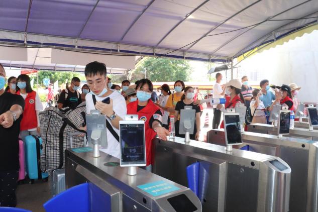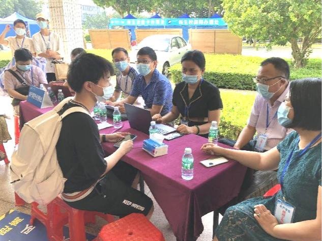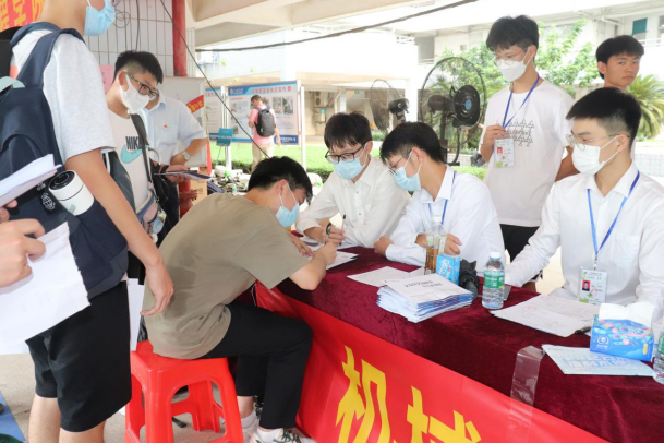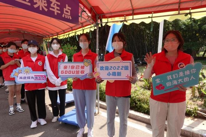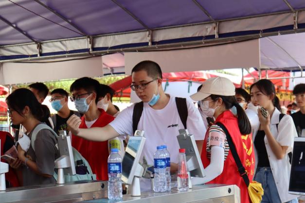 报到现场,在师生志愿服务人员的帮助引导下,新生有序通过迎新专用通道,完成测量体温、查验健康码及48小时核酸阴性证明、行李消毒、身份核验等入校程序后,“刷脸”进入校园。阳江校区按照疫情防控要求,在校门口设置了已完成落地核酸检测学生通道、未完成落地核酸检测学生通道、低风险区及7天内有低风险区旅居史学生通道、常态化防控区学生通道、家长休息区等区域。学校安排了循环运转的接驳车辆接送新生去往所在院系。现场只需凭企业微信工作台迎新系统的二维码,即可获得宿舍分配,领取新生入学手册等资料,正式成为“海大人”。各学院领导、专家教授、辅导员、班主任等在院系报到处耐心解答新生们的疑惑和问题,帮助新生更快地适应新环境,融入大学生活。
