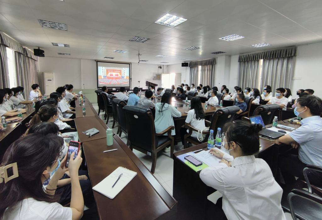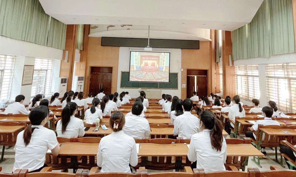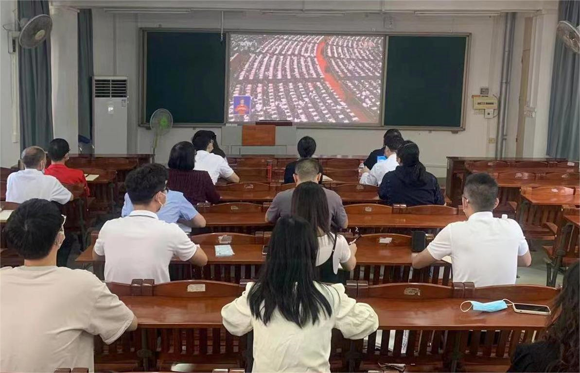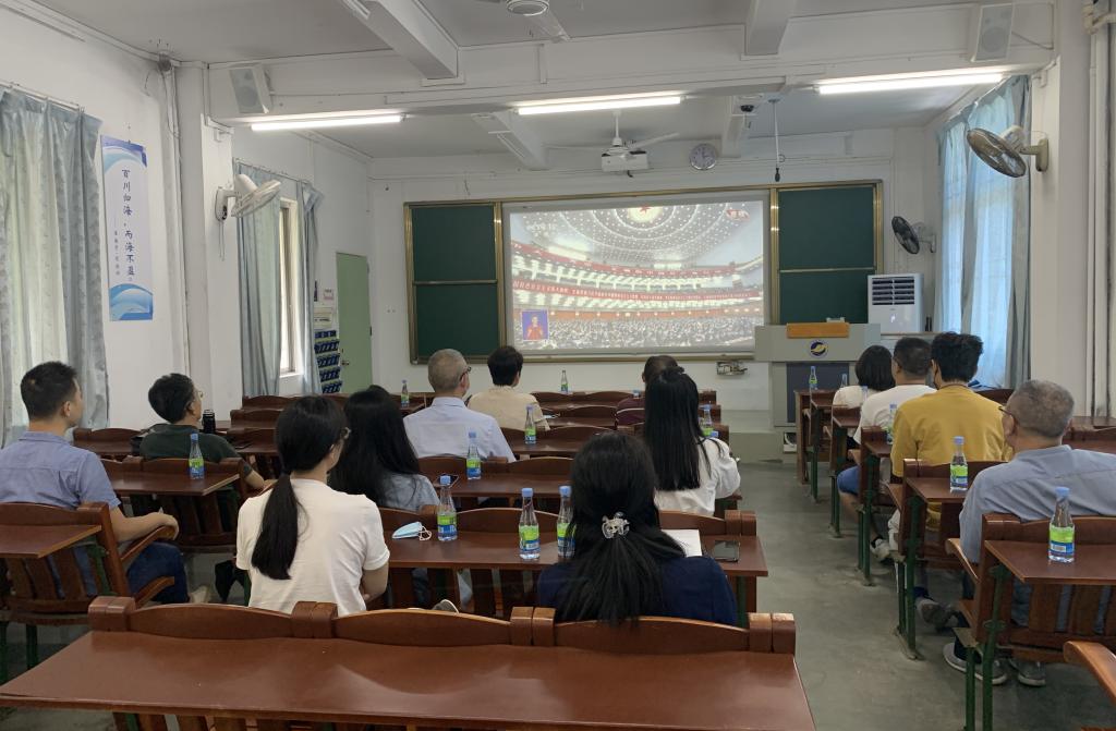 学校领导、党委委员和党务部门主要负责人集中观看直播