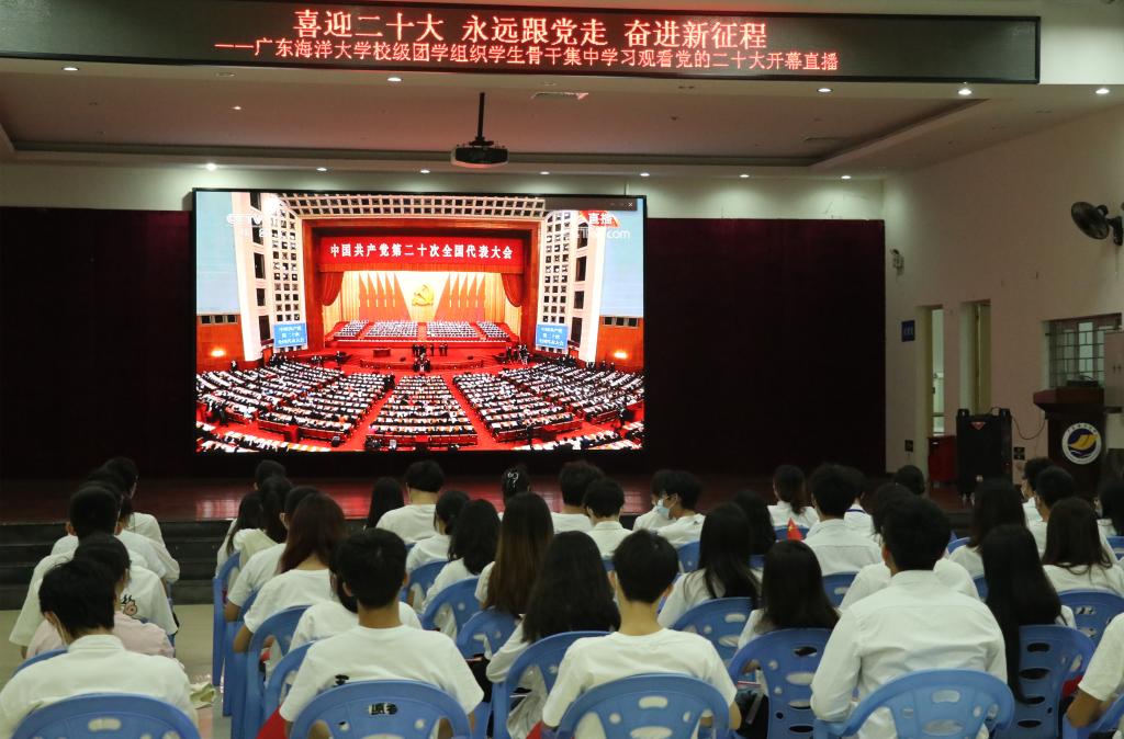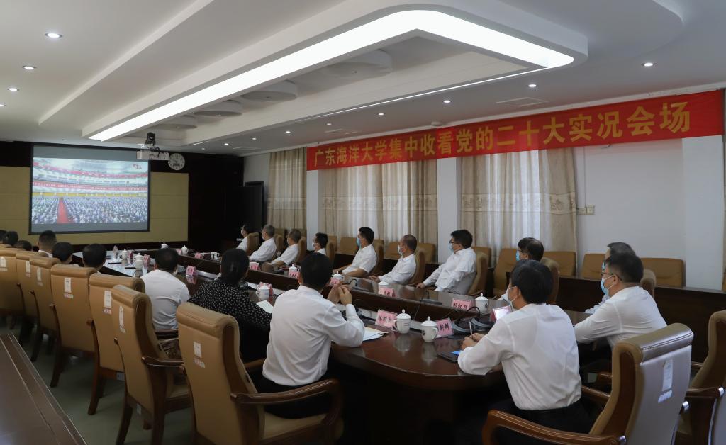全体校领导、党委委员和党务部门主要负责人在霞山校区第一会议室集中观看了直播。各二级党组织在湖光、海滨、霞山、阳江校区分别设立了54个会场,组织二级党组织党委委员、纪委委员、领导干部、师生党员代表集中观看了直播。各师生党支部,党委学生工作部、研究生工作部、校团委结合实际情况,分别组织全体党员、共青团员和普通学生以集中和分散、线上与线下相结合的方式收看收听了直播。全校共有1810名师生代表、887名党员干部参加了集中收听收看,其余师生和党员干部通过电视、新媒体、新闻网站、广播等多种形式自行收听收看了党的二十大开幕盛况。