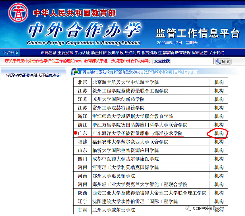 日前,教育部对2022年下半年各地上报的中外合作办学机构和项目进行了评审,依照专家评议结果,批准共计16个本科以上中外合作办学机构和25个本科以上中外合作办学项目。欧冠与俄罗斯圣彼得堡国立海洋技术大学合作举办的中外合作办学机构“欧冠官方网站圣彼得堡船舶与海洋技术学院”(许可证编号:MOE44RUA02DNR20232314N)名列其中。这是欧冠获批的首个中外合作办学机构,实现了欧冠中外合作办学工作的新突破。