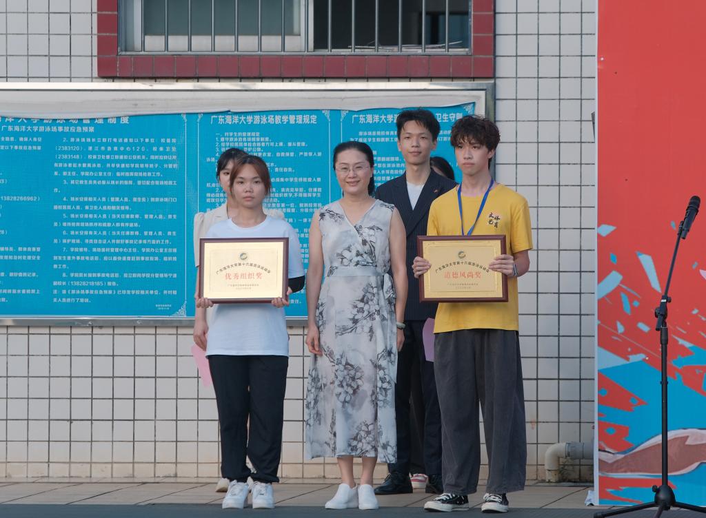 经过激烈角逐,体育与休闲学院、电子与信息工程学院、滨海农业学院、中歌艺术学院、机械工程学院、海洋与气象学院、管理学院分别获得学生组团体总分前六名;后勤工会、体育与休闲学院工会、机关工会、水产学院工会、机械工程学院工会、管理学院工会、阳江校区工会、文学与新闻传播学院工会分别获得教工组团体总分前八名,管理学院获“体育道德风尚奖”,机械工程学院获“优秀组织奖”。出席领导分别为获奖团体颁奖。