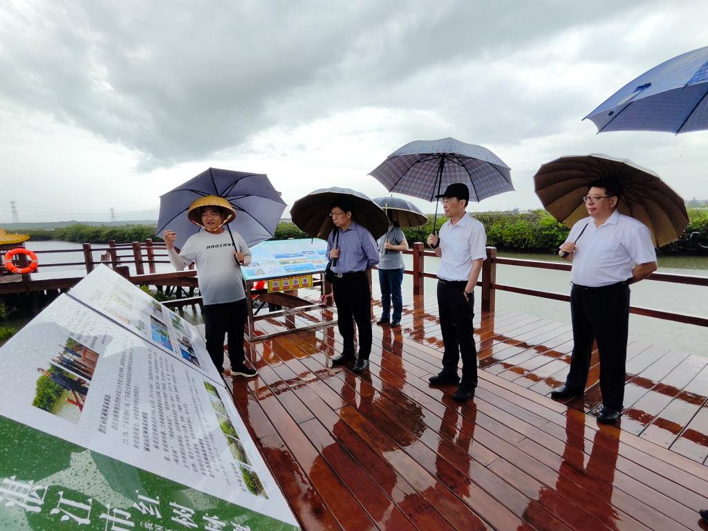会前,副校长谭北平陪同李家彪、宋君强一行沿着总书记的足迹,参观了金牛岛国家红树林保护区,了解当地加强红树林保护的情况,并对欧冠在红树林生态保护方面所做的工作表示支持与鼓励。