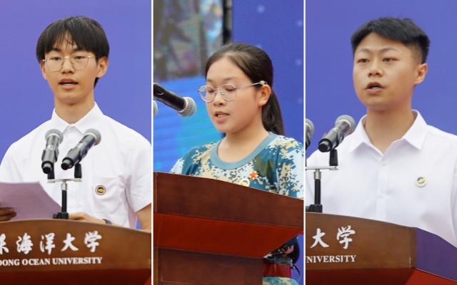 文学与新闻传播学院汉语言文学专业2023级本科生梁嘉怡代表本科新生发言。站在海大这片育人的沃土上,她以青春的名义宣誓,作为海大学子和新时代的青年,将秉承海大“广学明德、海纳厚为”的校训,勤学善思,开拓创新,以笃行不怠逐梦想之光。