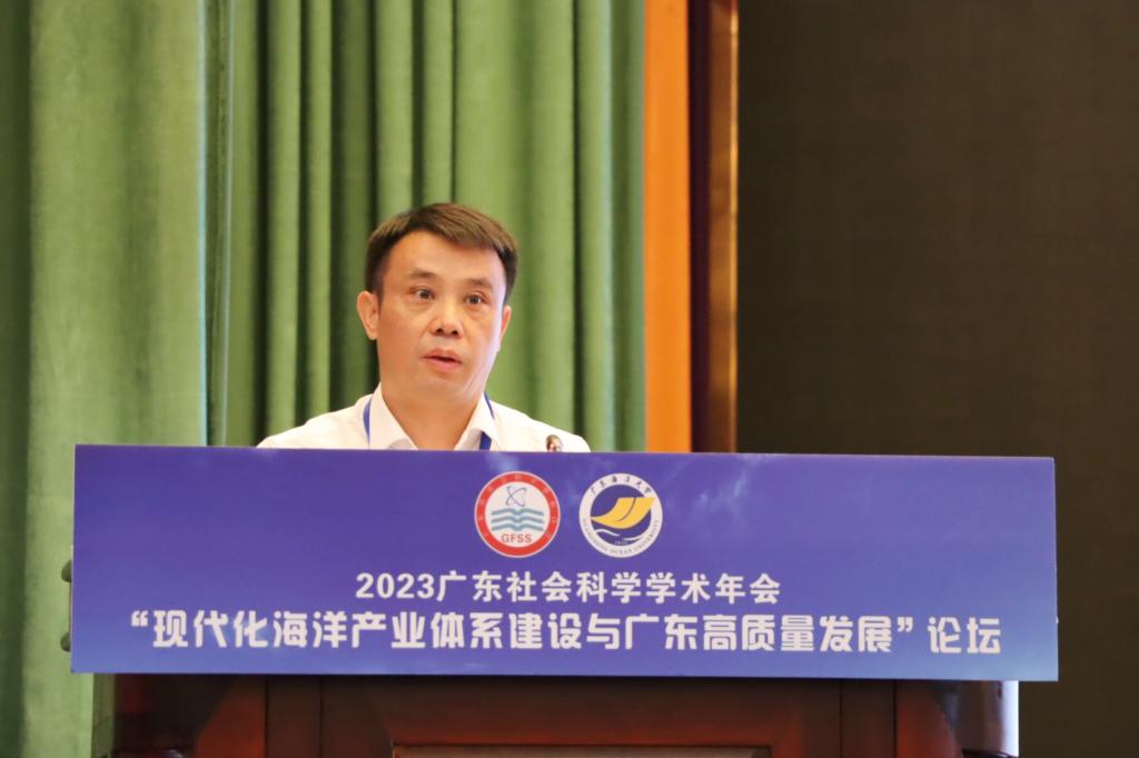 广东省社会科学界联合会二级巡视员何方俊向大会的召开表示热烈祝贺。他希望广大专家学者发挥自身学科专业优势和独特的区位优势,在海洋经济、海洋资源开发、海洋环境保护等领域多出研究成果,为促进广东海洋经济高质量发展,推动广东在中国式现代化建设中走在前列作出更大贡献。