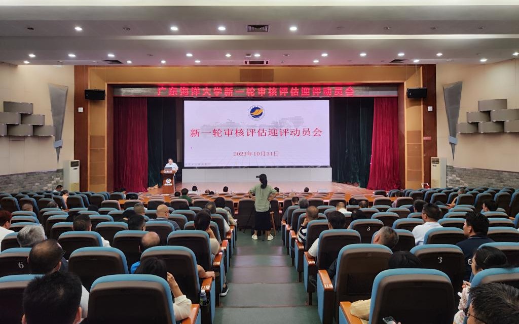 10月31日下午,学校在湖光校区广学楼多功能厅召开新一轮审核评估迎评动员会。学校党委书记杨洲作动员讲话。学校党委常委、副校长、评建办主任宁凌主持会议并部署工作。学校领导,全体处级干部、学校评建办公室及各迎评专项工作组人员、各单位(部门)审核评估工作负责人及联络人、评建任务办理人约200人参加会议。阳江校区相关领导及工作人员线上参会。