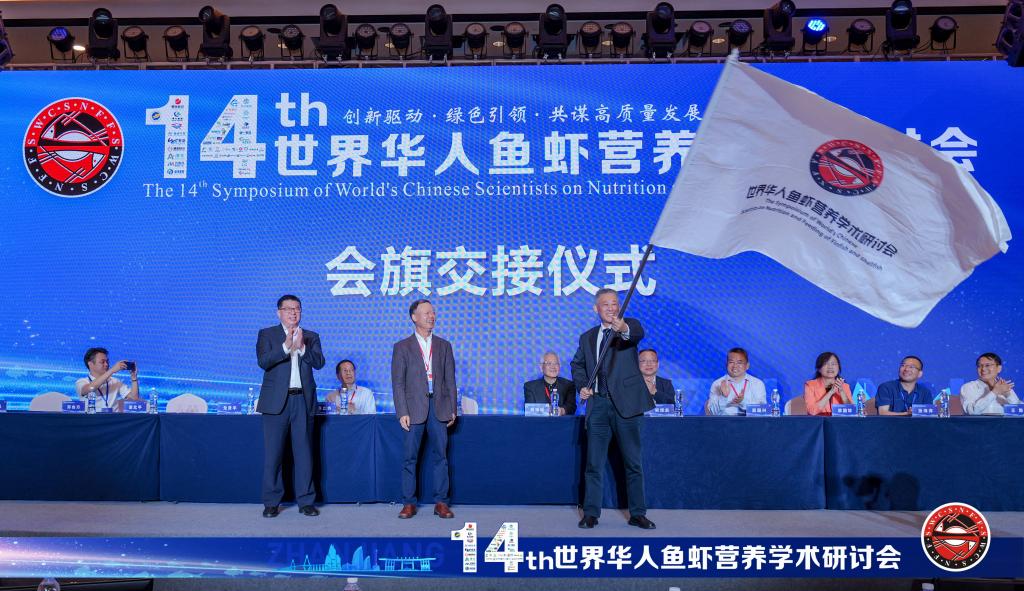 麦康森宣布下一届研讨会承办单位为中国水产科学研究院淡水渔业研究中心,并向淡水渔业研究中心党委书记戈贤平授会旗。