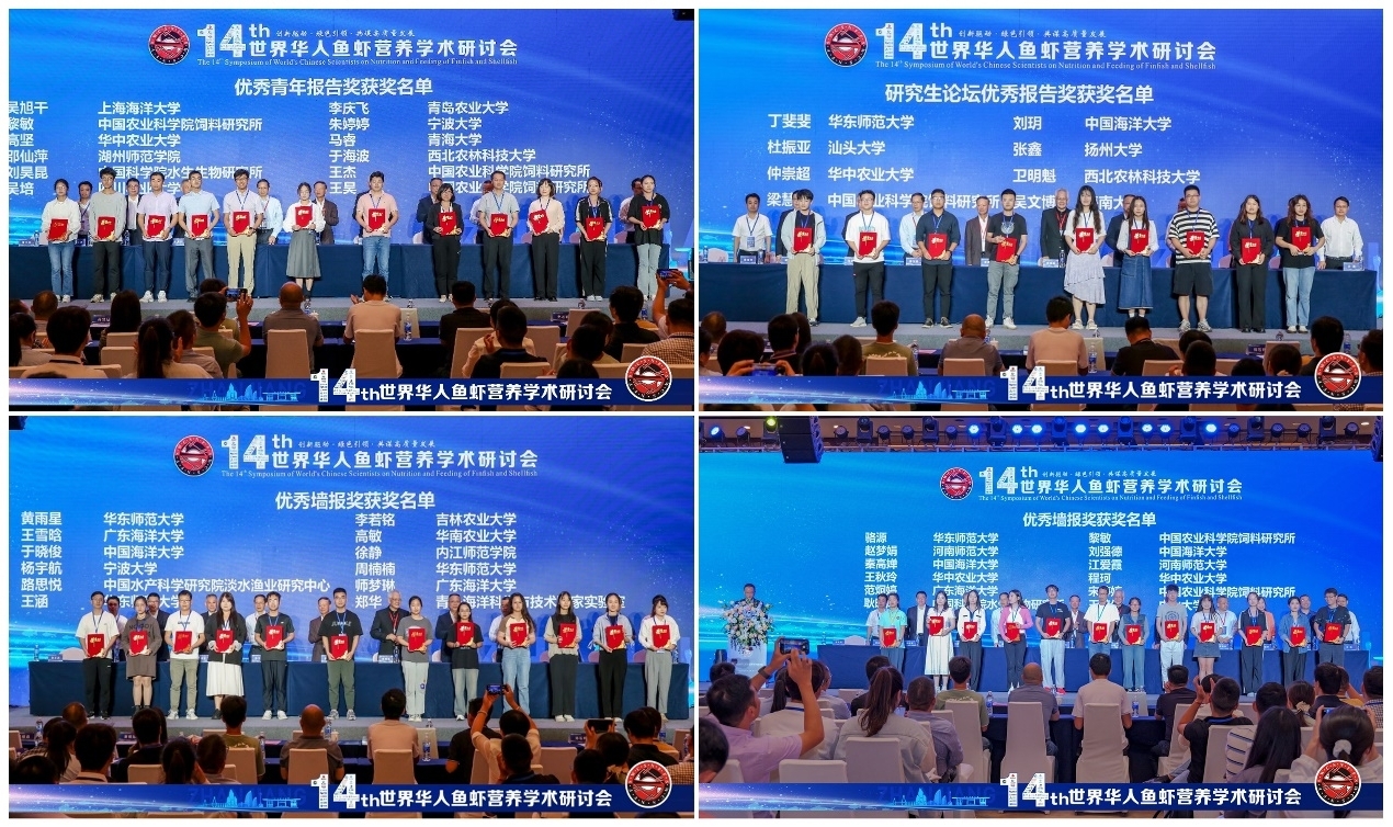 本届大会规模空前,吸引了来自世界各地、海峡两岸水产界260余家单位的1800余名代表参会,共收集论文摘要876篇,精心安排特邀报告9个,分会场口头报告158个,研究生论坛报告68个,墙报展示400篇,数据创下了大会历史新高,充分展示了我国乃至全球水产动物营养与饲料研究的最新成就与进展。本届大会共评选出优秀青年口头报告奖24个、研究生论坛优秀报告奖8个、优秀墙报奖30个。