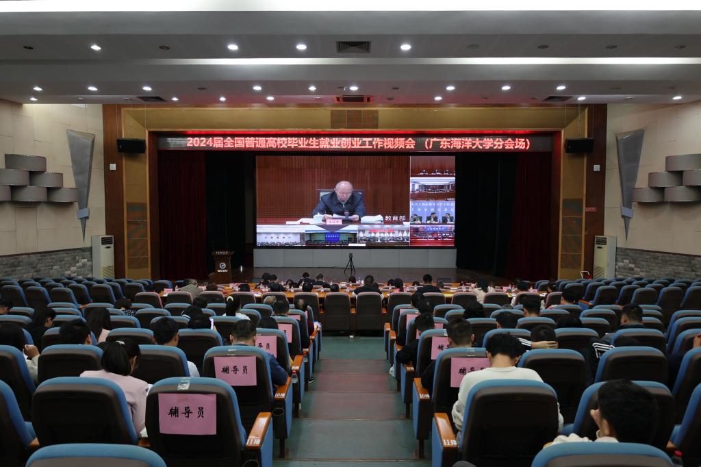为深入学习贯彻党的二十大精神,以习近平新时代中国特色社会主义思想为指导,总结工作,分析形势,全面部署做好2024届高校毕业生就业创业工作,12月5日下午,教育部、人力资源和社会保障部联合召开2024届普通高校毕业生就业创业视频会议。学校党委书记杨洲,党委副书记林晓敏,学生工作部和研究生工作部等部门负责人,各学院党委书记、院长、分管学生工作领导和2024届全体毕业班辅导员共80余人在湖光校区广学楼多功能厅参加视频会议。