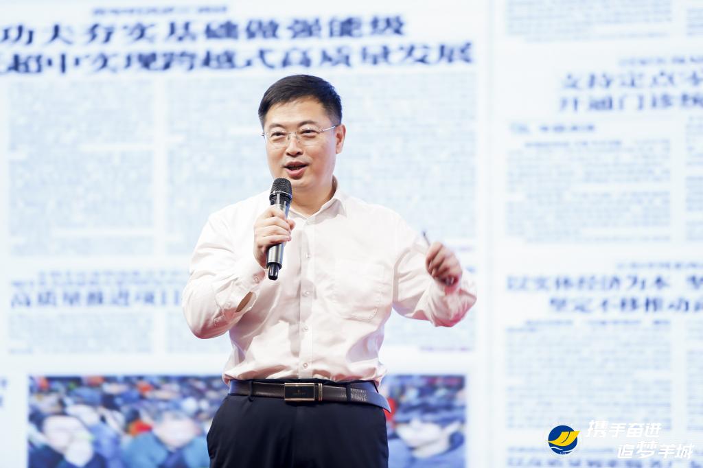 杨洲强调,明年是学校建校90周年。90周年不仅是学校建设发展上重要的历史节点,更是新时代学校高质量发展的新高度、新阶段、新起点。希望每个海大人薪火相传,接续奋斗,立足当前,着眼未来,凝聚力量,动员各方,共画高水平海洋大学建设“同心圆”,共创海大高质量发展的新局面。