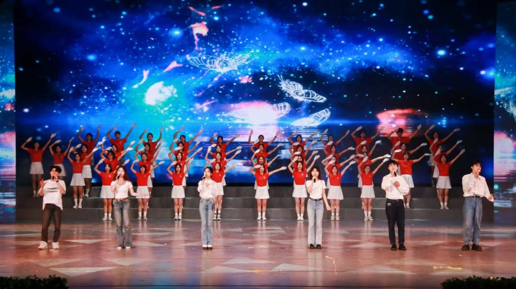 表彰结束后,现场进行“五月盛会”文艺汇演。开场节目《青春,启航》铿锵有力、感情真挚,生动展示了中国青年在新时代新征程上锐意进取、踔厉奋发的青春形象。歌曲《每一步,都算树》用温暖的歌声唱出了海大青年的“绿美”故事。快板《同心筑梦百千万》展现了海大青年行走田间、奔赴山海助力“百千万工程”的决心和信念。合唱《奔跑的青春》将整场演出气氛推向高潮,激励海大青年勇担时代重任,向着星辰大海扬帆远航。在团歌的激昂旋律中,此次盛会圆满落幕。