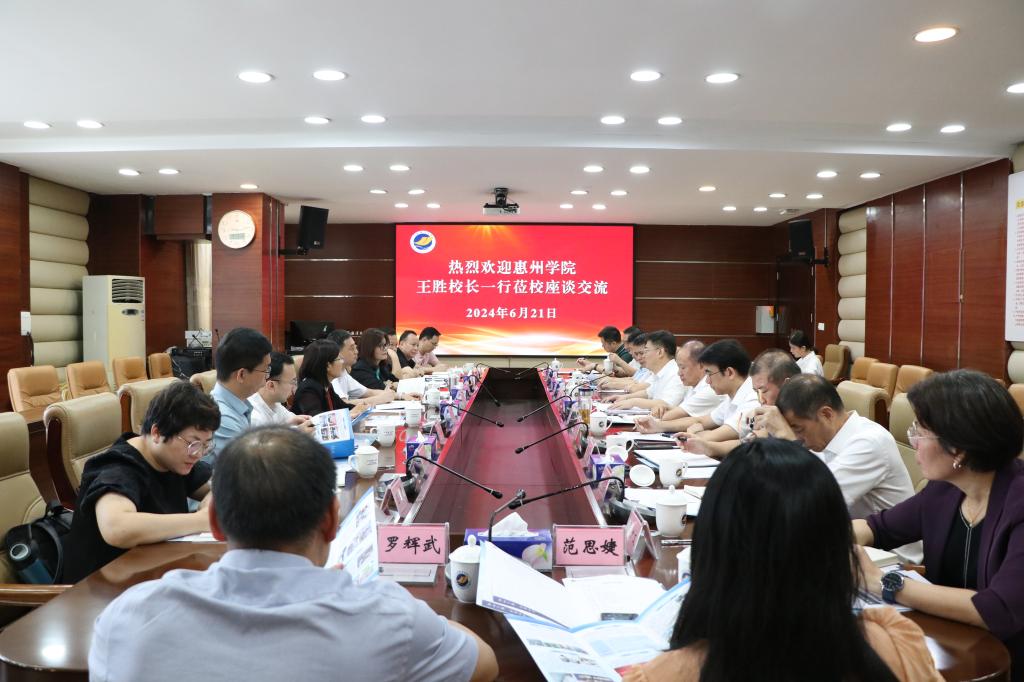 6月21日上午,惠州学院党委副书记、校长王胜,党委副书记车小真,副校长魏晓慧一行11人来校调研交流。学校党委书记杨洲主持座谈会,党委常委、副校长邓逢光,相关职能部门负责人参加会议。