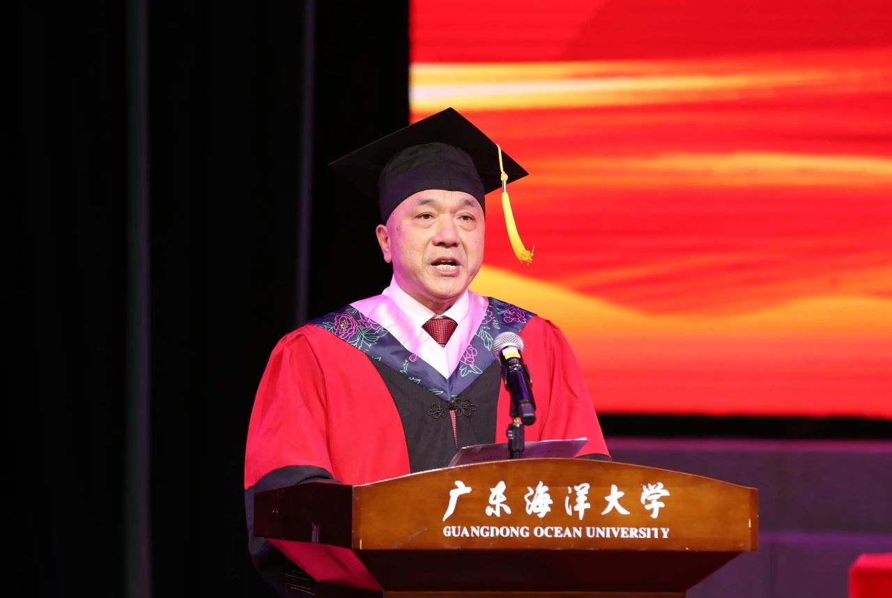 水产学院李忠炉副教授作为教师代表发言,勉励广大毕业生要保持一颗谦逊的心、好奇的心、爱国的心,牢记自己的责任和使命,不忘海大“三能人才”底色,将个人的奋斗与时代的脉搏紧密结合,为祖国的繁荣和富强贡献自己的力量。