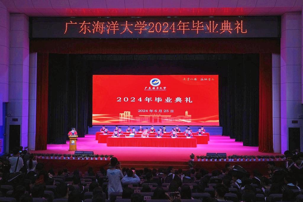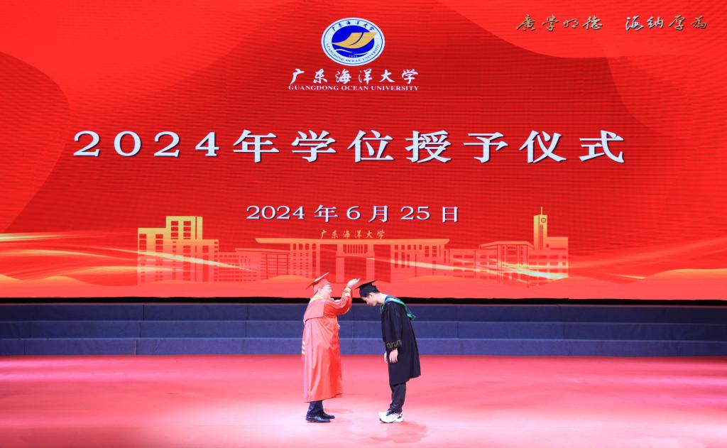 聆听大学“最后一课”、拨穗正冠为青春“加冕”、护送毕业纪念旗入场、唱响青春“演唱会”、策划“走心”毕业礼、发出青春“誓言”、“打卡墙”留影……6月25日,学校2024年毕业典礼暨学位授予仪式以线上线下相结合的方式举行,10000余名海大学子带着师长的殷殷嘱托、家人的深深祝福、同学的绵绵情谊,在满满的“青春仪式感”中,吹响奔赴未来的号角。学校领导杨洲、谭北平、宁凌、邓逢光、周昌仕、林宇出席典礼。2024届毕业生、相关职能部门负责人、各学院领导以及教师代表、家长代表参加了毕业典礼。学校党委常委、副校长宁凌主持典礼。