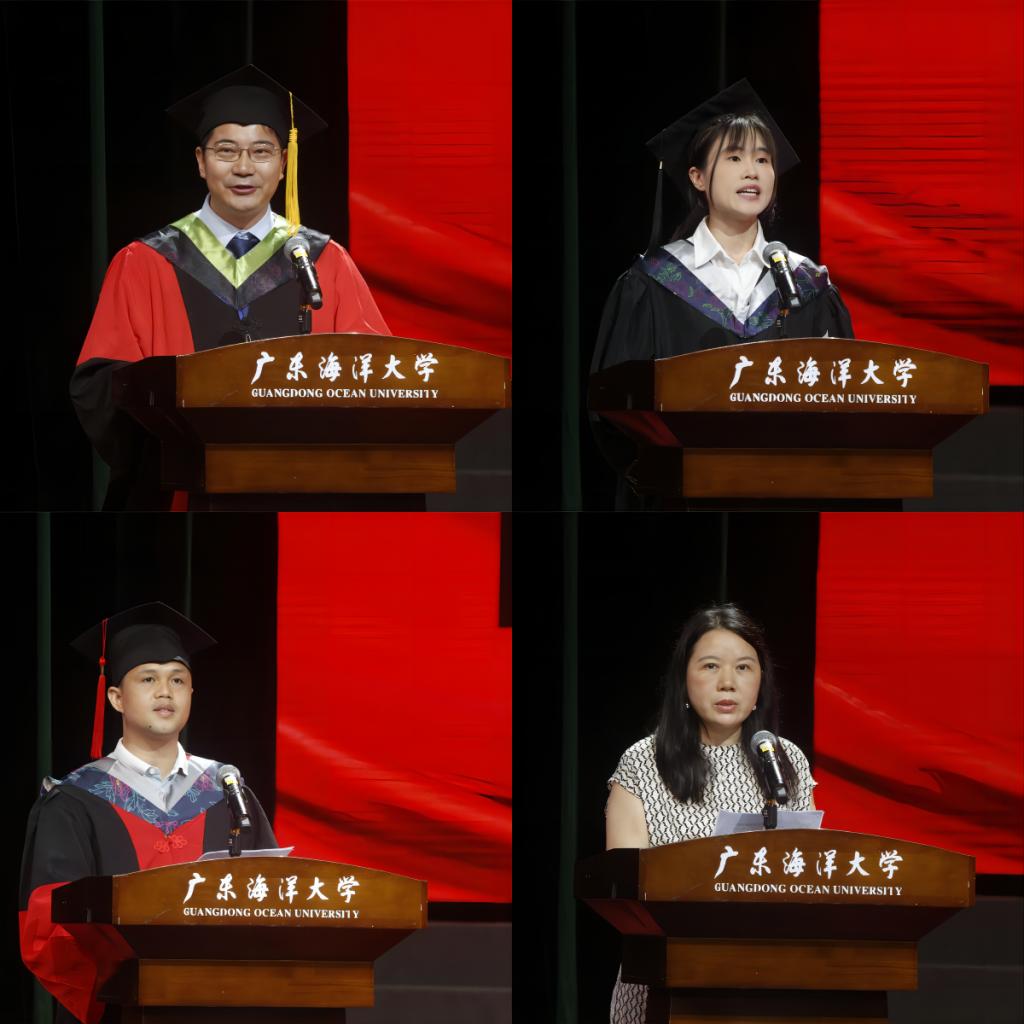 环境学院海洋科学博士毕业生劳齐斌作为研究生毕业生代表发言,表示将带着求学期间收获的纯粹、坚定、真诚和炽热,坚持和发扬“广学明德,海纳厚为”的校训,扬帆起航,逐梦远方。