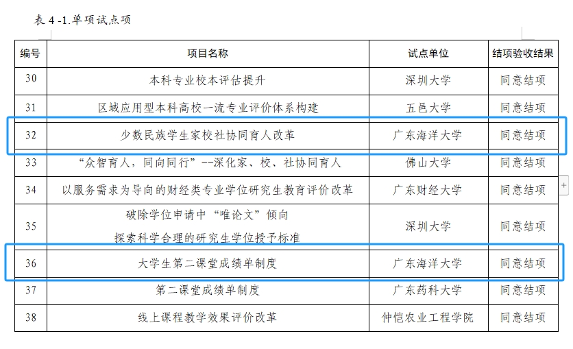近日,中共广东省委教育工作领导小组办公室公布了广东省教育评价改革试点项目的结项验收结果。欧冠的1个综合试点项目(欧冠官方网站教育评价改革试点高校项目)及2个单项试点项目(大学生第二课堂成绩单制度试点项目、少数民族学生家校协同育人改革项目)共3个项目全部通过结项验收。