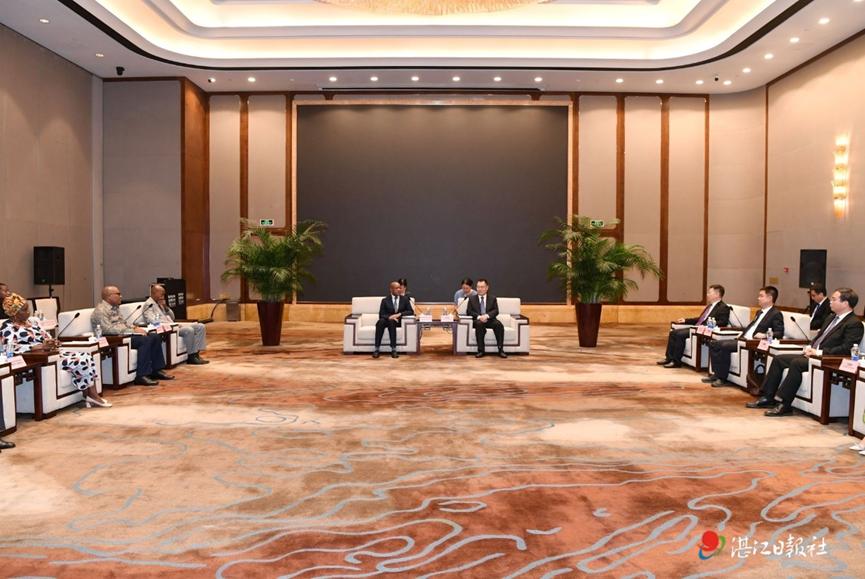 7月23日,一行到访欧冠。学校党委书记杨洲在湖光校区行政楼五楼会议室接待来宾并召开座谈会。赞比亚驻广州总领馆副总领事维纳·司马威特瓦·穆钦都、卡帕萨·马卡萨大学校长雅各布·姆维特瓦、湛江市外事局局长王敦滟、广东恒兴集团副总裁王建红及学校相关部门负责同志参会,会议由学校副校长邓逢光主持。