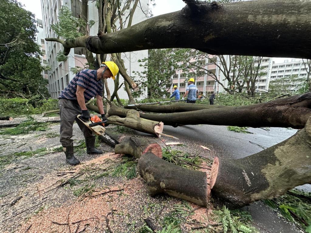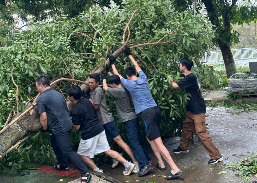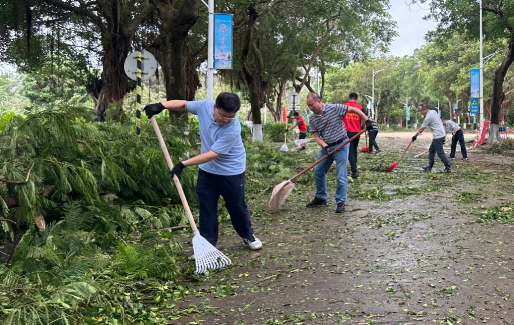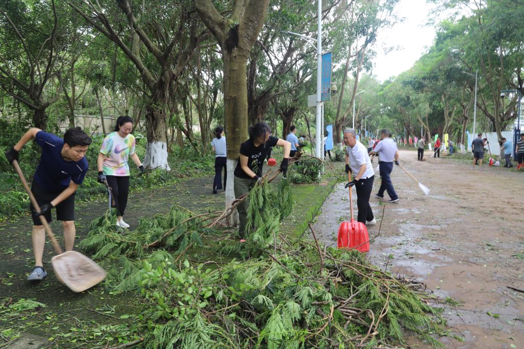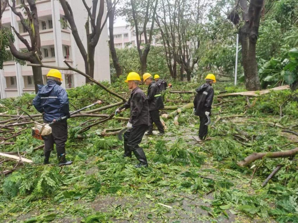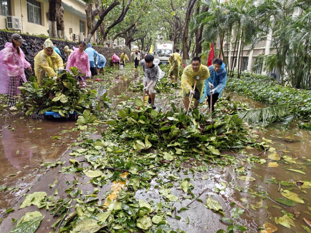 为尽快恢复正常的教学、生活秩序,同时全力保障新生顺利安全入学报到,9月7日早上,骤雨初歇,风还未停,学校便积极组织力量,迅速开展清理恢复工作。校领导带头深入校园一线、靠前指挥,广大党员干部、师生员工主动担当、积极作为,多部门协同作战、紧密配合,全校上下争分夺秒、众志成城,按下灾后恢复“快进键”,筑牢海大校园“安全线”。