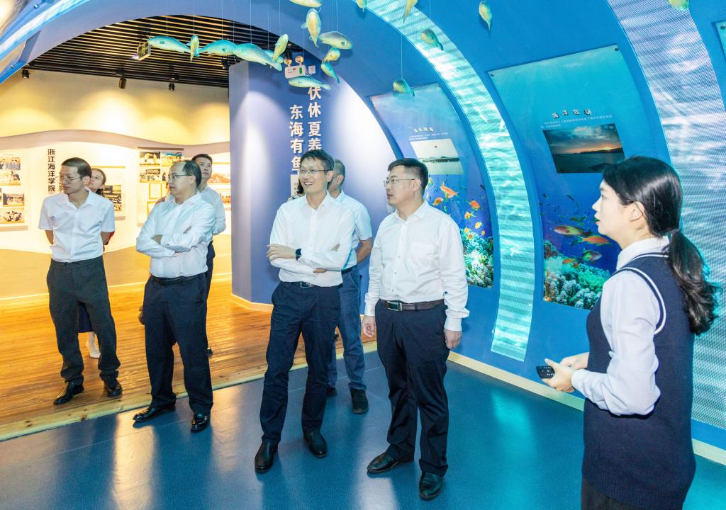 12日,浙江海洋大学党委书记严小军、校长武传宇,副校长谢永和等陪同调研并座谈。严小军表示,两校同属于水产类学科起家的海洋类高校,历史上具有深厚的渊源,希望两校进一步深化合作,在海洋科技创新、学科和平台建设、人才培养等方面持续加大交流合作力度,共同为区域海洋经济高质量发展和海洋强国建设贡献强大力量。杨洲表示,作为海洋类兄弟高校,两校始终保持着良好的合作,希望两校在学科发展、科学研究、教育教学等方面能够进一步加强交流与合作,协同互补、携手共进。杨洲一行参观了该校图书馆、校史馆、国家海洋设施养殖工程技术研究中心、海洋新质生产力展厅。