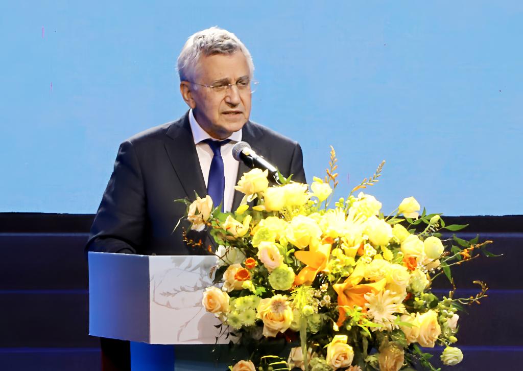 学院副院长刘畅代表学院讲话,表示中俄两校将深化合作,携手构建国际化的课程体系,强化实践教学环节,推动科产教融合,积极开展国际交流项目。教师代表、圣彼得堡船舶与海洋技术学院电子信息系主任卢庆杰博士、2023 级学生代表和2024级新生代表分享了自己的教学、学习与生活经验,勉励全体新生共同努力,勤奋学习,国内外先进的知识和文化,为实现个人梦想和社会责任而不懈奋斗。