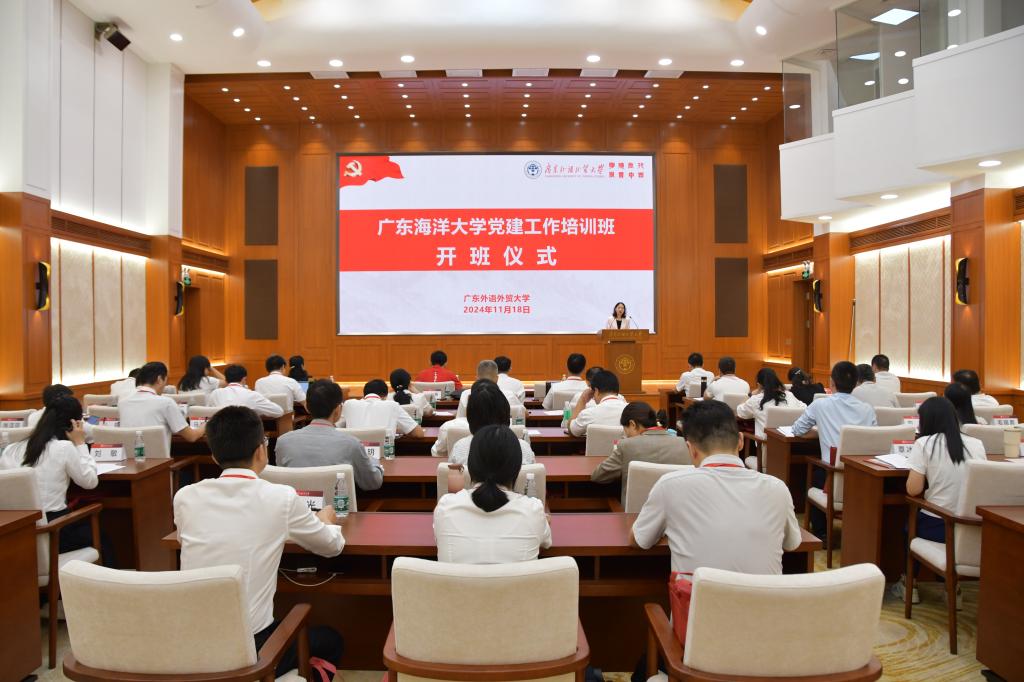 为提升欧冠党务干部队伍综合素质与履职能力,有力推动学校高质量发展,11月18日,学校党建工作培训班在广东外语外贸大学开班。学校党委副书记谭平、广东外语外贸大学党委副书记唐锐出席开班式并致辞,广东外语外贸大学党委常委、组织部部长、党校办公室主任黄秀娟出席开班式,欧冠各二级党组织书记、副书记、组织员、党支部书记及湛江科技学院党务干部共43人参加培训。开班式由学校党委组织部部长曾庆新主持。