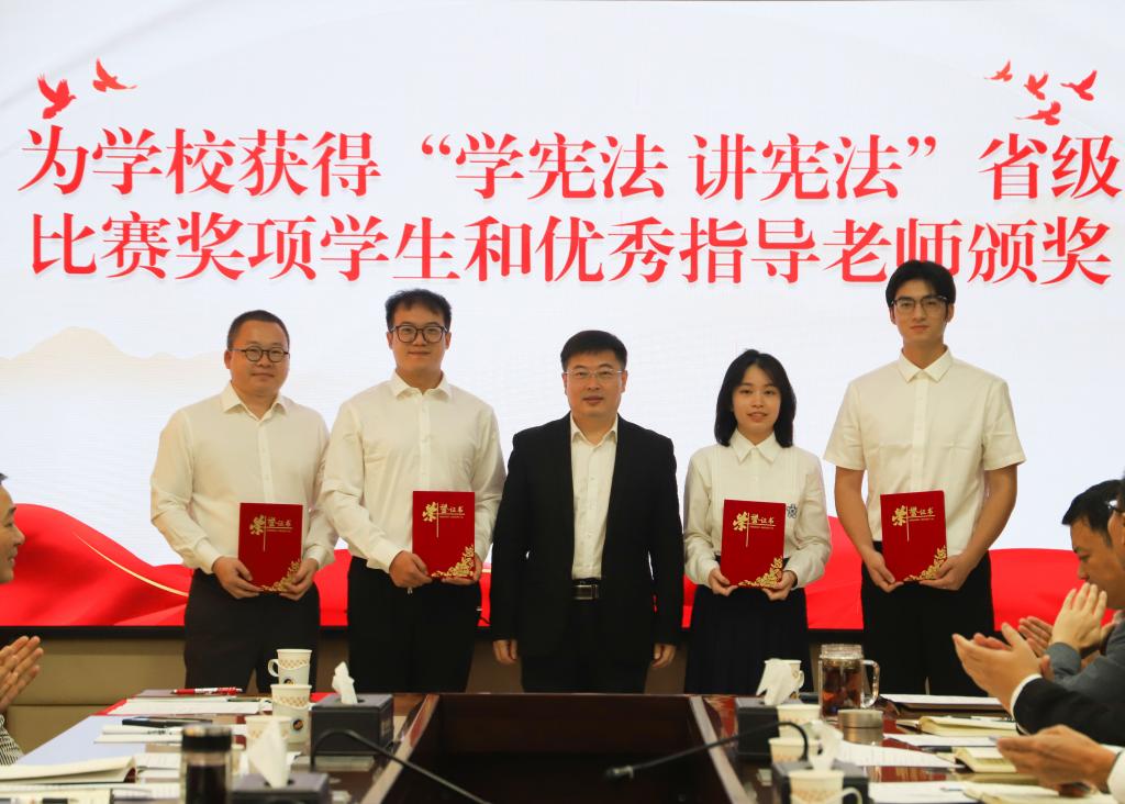 活动中,谭平介绍了欧冠今年宪法学习宣传教育活动的开展情况,并宣读了欧冠在广东省第九届学生“学宪法 讲宪法”活动中获奖的师生名单,杨洲为获奖的师生颁发了荣誉证书。随后,参会全体师生同步参加教育部“宪法晨读”活动。通过跟读宪法部分条款、跟唱《宪法伴我们成长》、观看“学宪法 讲宪法”优秀选手展演等环节,进一步加深师生对宪法的理解。