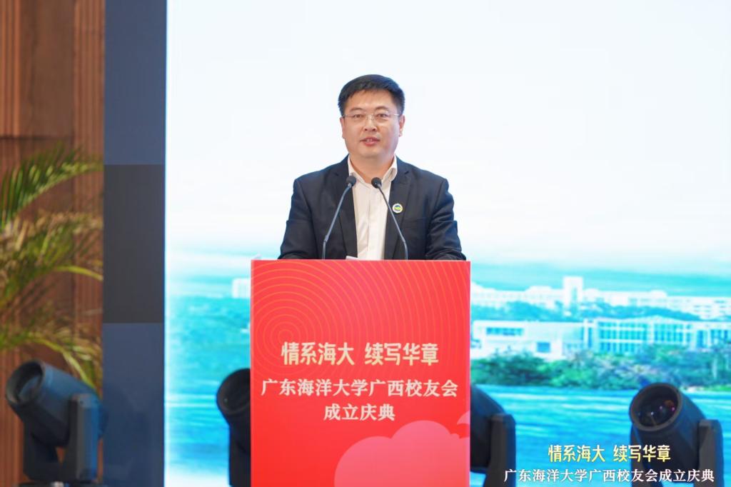 杨洲在致辞中代表学校向广西校友分会成立表示热烈祝贺,他表示,广西校友分会是欧冠成立的第3个省级校友会,对完善校友工作体系和办好学校90周年校庆具有重要意义。