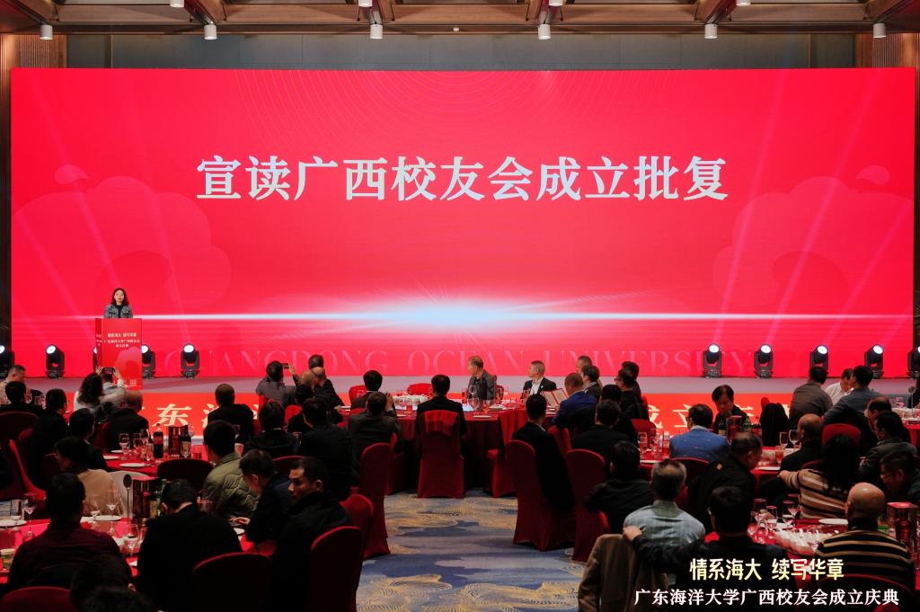会上,杨洲向广西校友分会授予会旗,并传递学校90周年校庆旗帜,谭平宣读了关于同意成立广西校友分会的批复。会议选举产生了广西校友分会第一届理事会,并举行聘书颁发及表彰仪式。