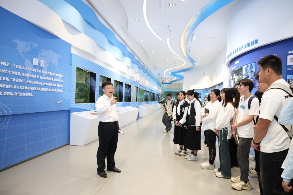 在水生生物博物馆,杨洲为同学们讲解了欧冠近年来开展海洋牧场全产业链创新的代表性成果,激励海大学子在新时代创新赛场上勇立潮头、锐意进取,共同为国家经略海洋、走向深蓝作出应有的贡献。