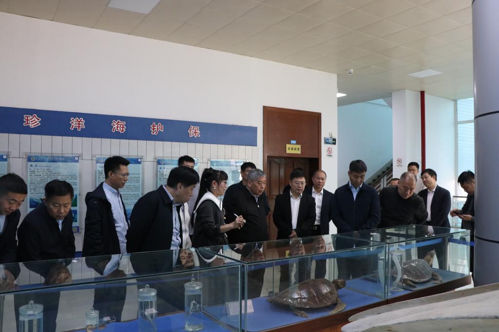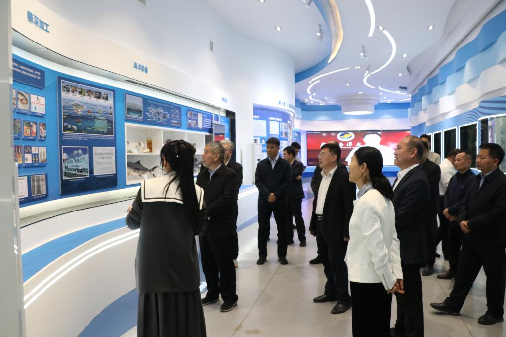 史全新一行参观了欧冠海洋牧场展厅,重点了解了学校在水产种业、渔业资源开发利用、耐盐碱水稻培育推广和海洋生态环境保护等方面的情况,对学校近年来取得的成绩给予高度评价,表示希望以此次调研为契机,加强校地合作,充分发挥高校的智力优势,在当地农业发展特别是水产养殖等方面给予技术指导和帮扶。