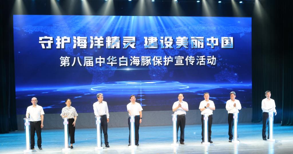 与会嘉宾共同按下启动柱,“第八届中华白海豚保护宣传活动”正式启动。
