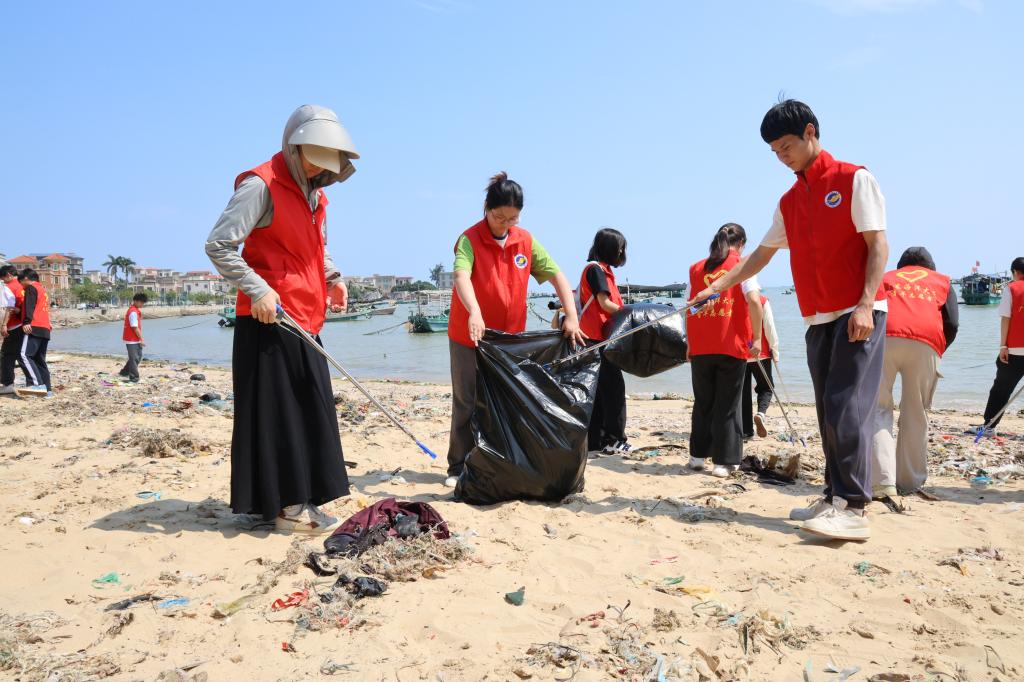 在活动现场,志愿者们与参与者携手开展了净滩行动。大家手持垃圾袋和夹子,沿着海岸线认真清理垃圾,以实际行动守护这片蔚蓝的海洋。净滩行动不仅有效净化了海滩环境,更进一步提升了公众的环保意识。