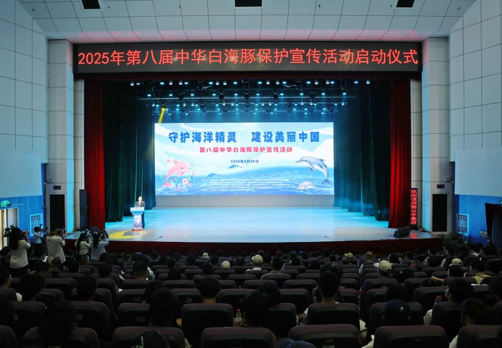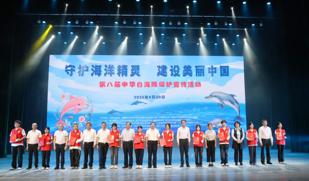 2025年4月20日,以“守护海洋精灵,建设美丽中国”为主题的第八届中华白海豚保护宣传活动在湖光校区中歌实验剧场举行。农业农村部渔政保障中心副主任郭云峰,中国渔业协会会长崔利锋,学校党委常委、副校长鲁义善出席活动,中国野生动物保护协会水生野生动物保护分会会长李彦亮主持活动。来自政府部门、水生生物自然保护区、科研机构、高等院校、社会组织、企业界、新闻媒体以及志愿者团体的近500名代表参加活动。