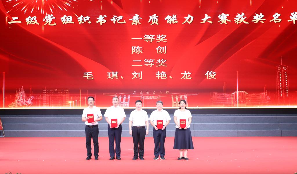谭平总结了二级党组织书记素质能力大赛情况,会上播放了优秀微党课和党建工作案例视频。学校领导分别为获得二级党组织书记素质能力大赛奖项的二级党组织书记、获评“优秀微党课”和“党建工作案例”的二级党组织书记颁奖。