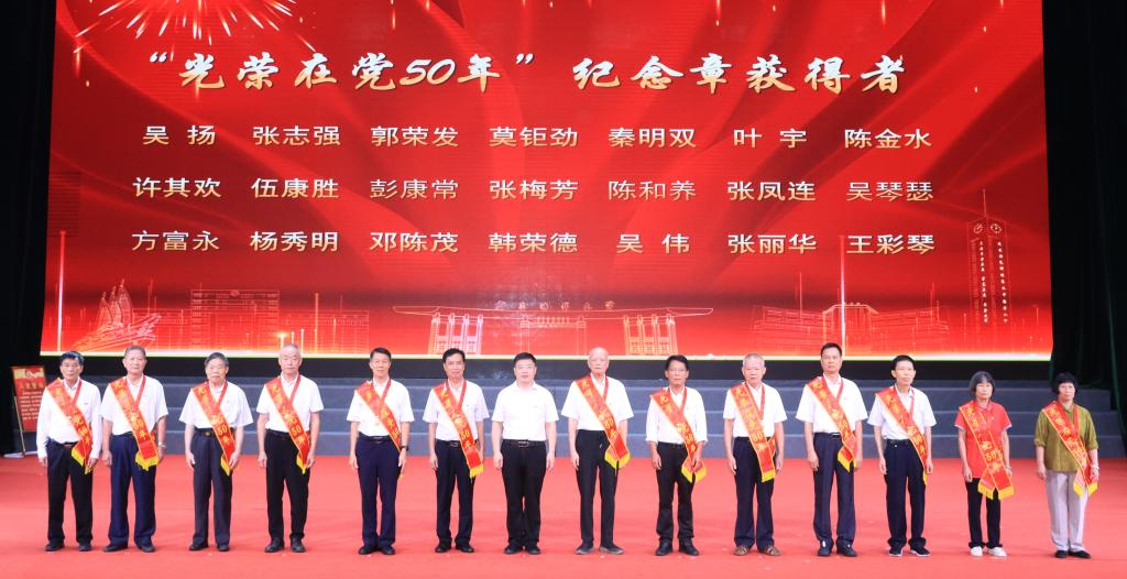 会上,杨洲为“光荣在党50年”的老党员佩戴绶带和颁发纪念章,代表学校党委向为党的教育事业和海大发展奉献了毕生心血的老党员、老前辈们,致以敬意和问候。