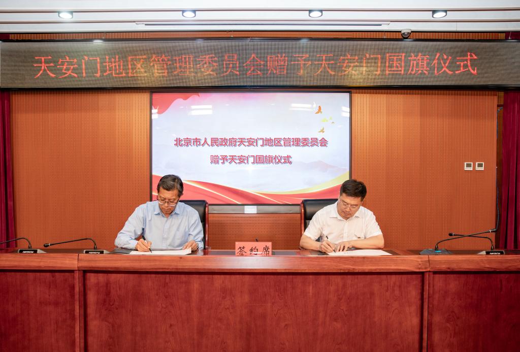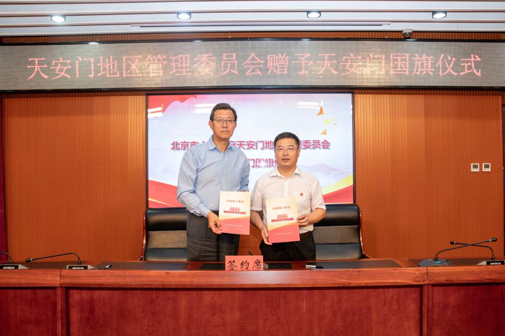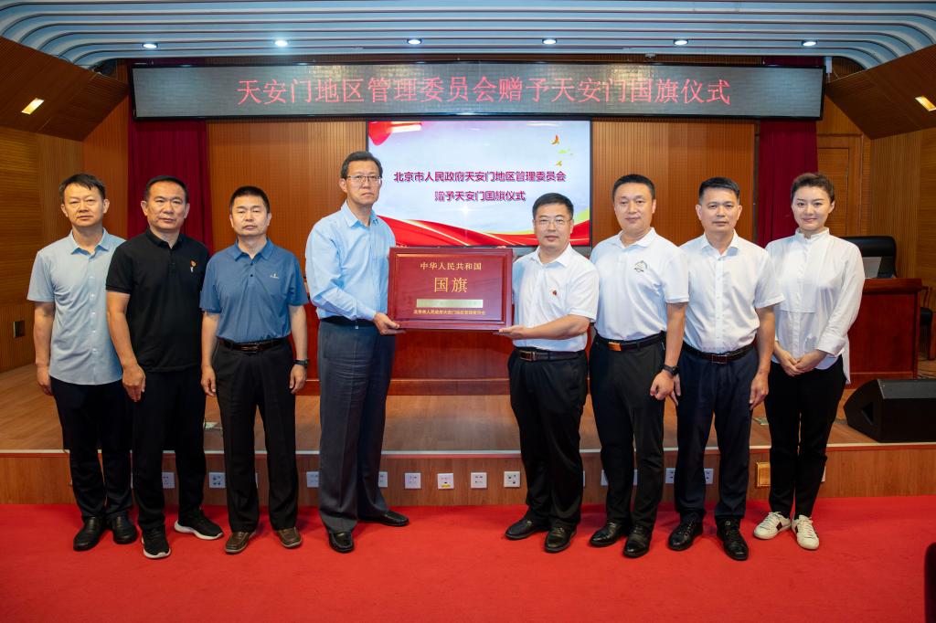 8月1日,北京市人民政府天安门地区管理委员会举行赠予天安门国旗仪式。天安门地区管委会党组成员、副主任姚辉,天安门广场管理处、综合管理服务中心领导和欧冠党委书记杨洲,党委常委、副校长鲁义善,党政办主任尹喜等参加仪式。