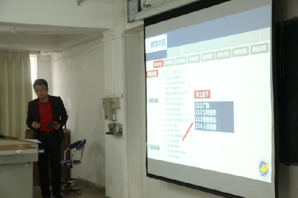 薛骄龙博士主讲了市场营销学课程的《促销策略》章节,从教学内容、教学目标、教学重难点、学情分析、教学模式、教学方法、教学过程、课程总结等8个部分对课程设计思路进行讲解,采用了案例教学法、直观演示法、头脑风暴法等,整场课程思路清晰,生动活泼,贴近实际。