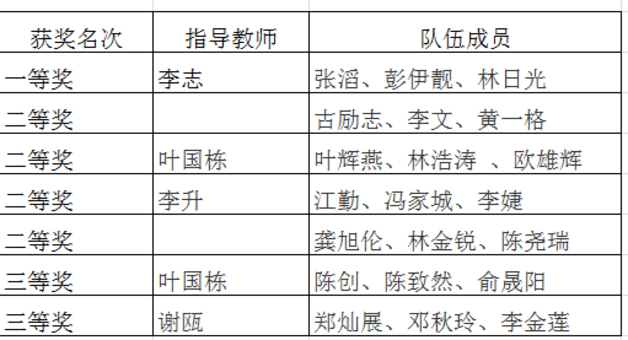 获奖名单