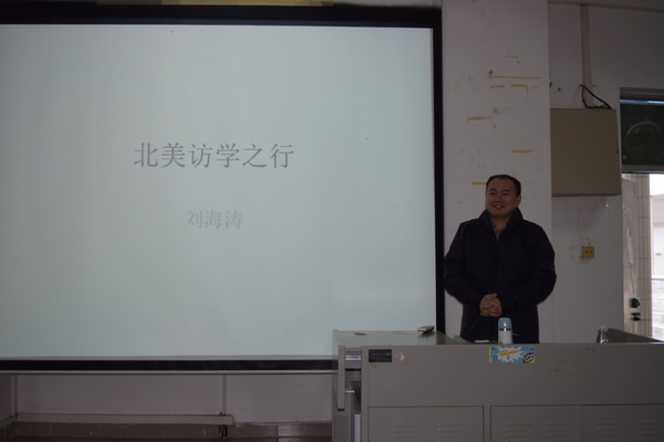 机械工程系刘海涛博士作了“北美访学”学术交流报告,从生活、教育、学习等方面全面阐述了一年的访学经历,重点介绍了在密歇根州立大学(Michigan State University)访学期间如何快速融入当地高校的学习环境,通过与导师、团队成员交流扩展视野及提高学术能力,从而在一年时间内与导师合作撰写了两篇高水平的文章。