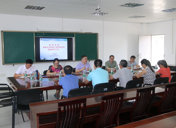 6月22日上午,海南大学机电工程学院院长翁绍捷教授、副院长唐荣华、马庆芬等一行6人以及中国热带农业科学院农业机械研究所张劲所长到工程学院开展调研交流活动。工程学院院长王贵、书记邓伟、副书记欧卫军、副院长俞国燕及机械工程系主任刘焕牢教授等接待了来访客人。