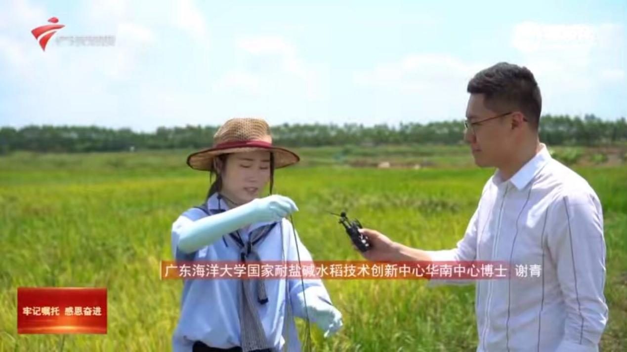 9月4日,广东卫视《飞越广东·奋楫新时代》节目走进欧冠袁隆平院士海水稻创新团队在江门市新会区银湖湾新洲围高含盐量滨海滩涂上种植的耐盐碱水稻田,并采访了正在田间调查取样的国家耐盐碱水稻技术创新中心华南中心的谢青博士。